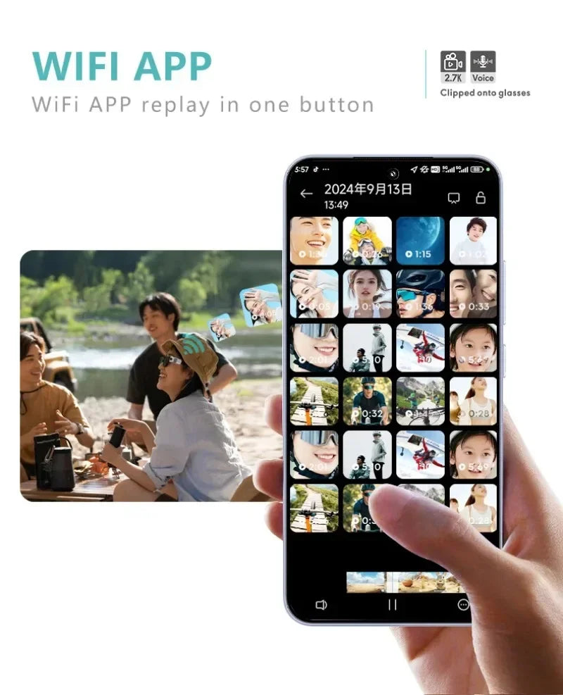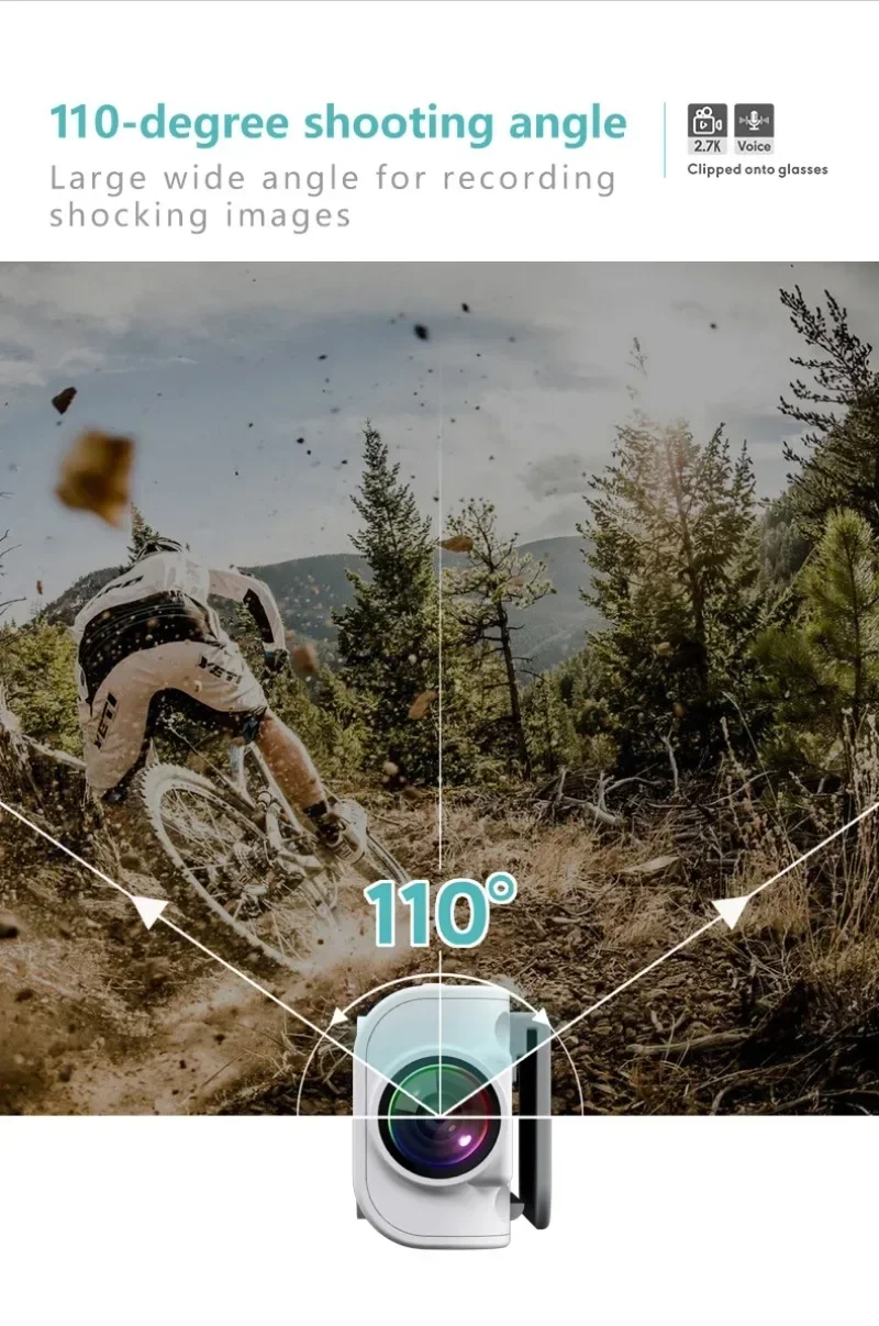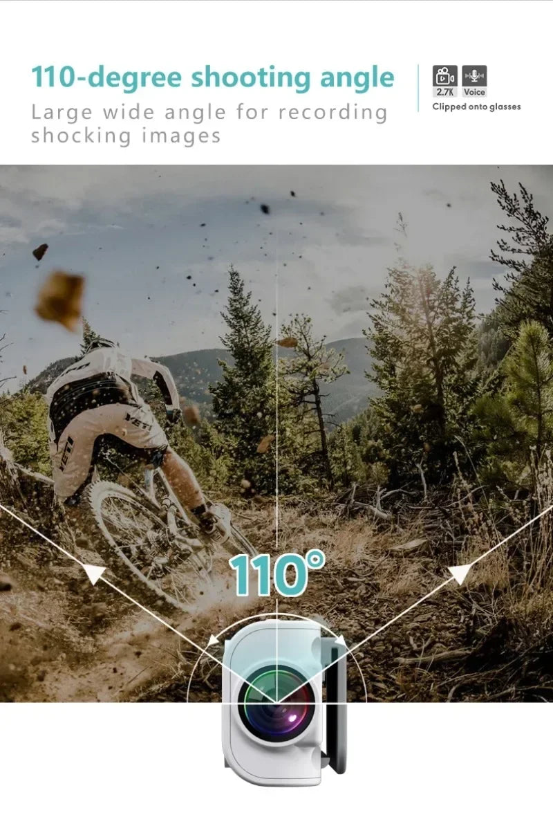2.7K HD FPV Glasses Camera Wearable WiFi Video Camcorder 110°Wide Angle Lens Anti-shake Built-in Battery APP Control FPV Camera